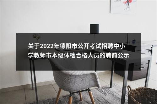 原标题:德阳市人力资源和社会保障局关于2022年德阳市公开考试招聘中小学教师市本级体检合格人员的聘前公示