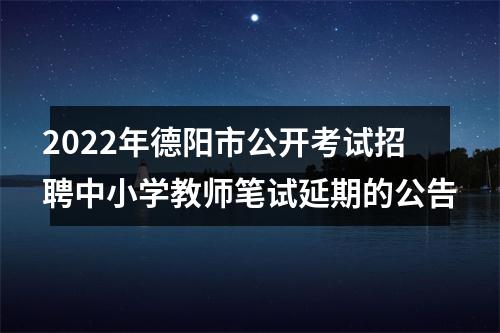 原标题:德阳市人力资源和社会保障局关于2022年德阳市公开考试招聘中小学教师笔试延期的公告